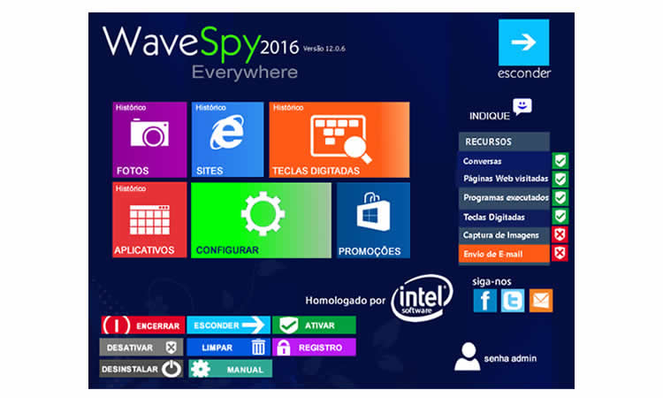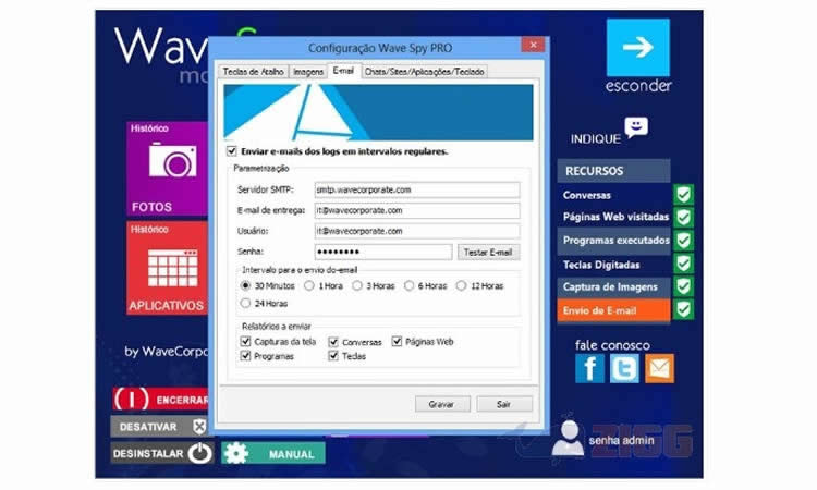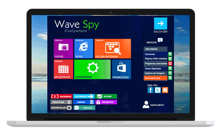O WAVE SPY PRO espião do computador permite que você monitore todas atividades do computador de forma sigilosa e invisível, 100% oculta sem que o usuário perceba que está sendo “monitorado “. O programa envia todos relatórios de acordo com as configurações pré-determinadas por você.